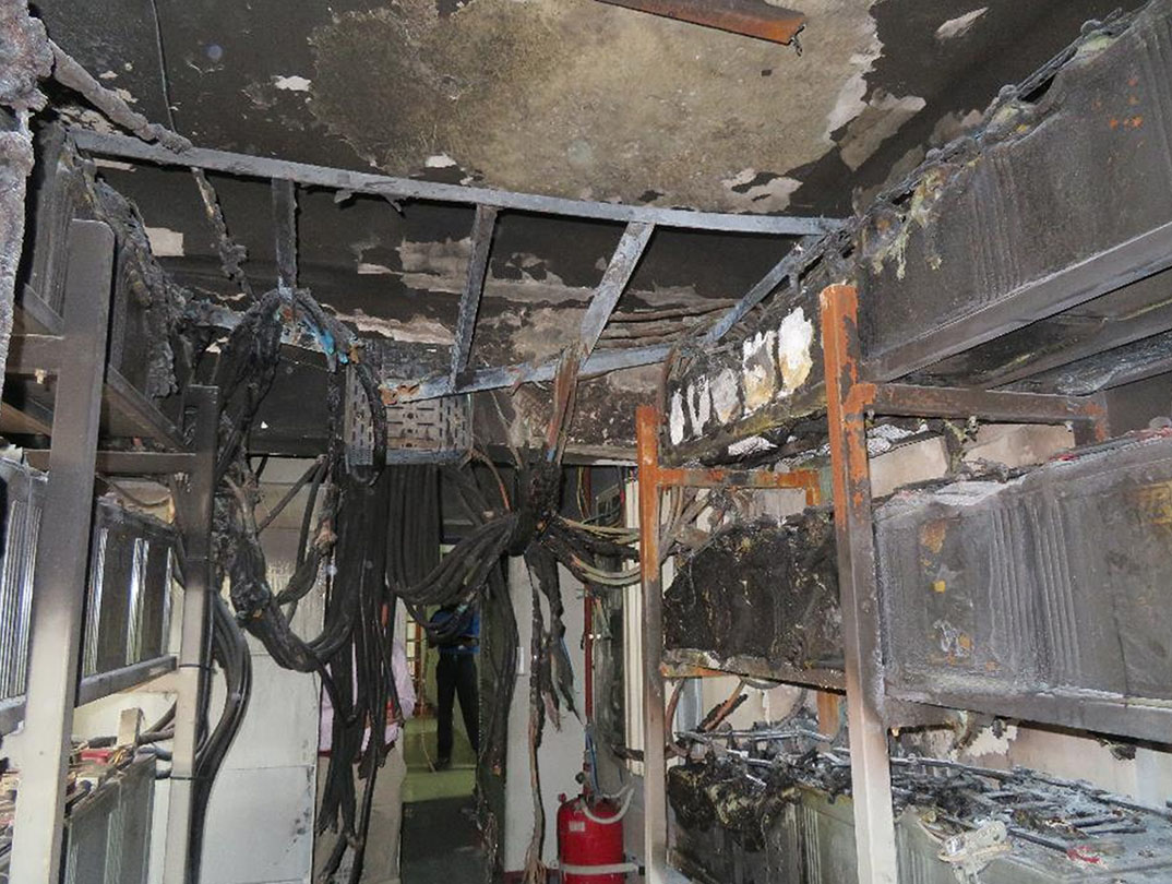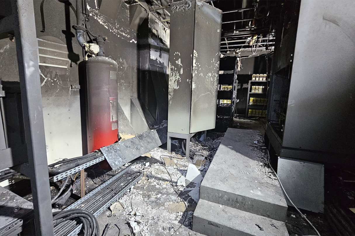 A communications facility experienced two fire events in the same uninterruptible power supply (UPS) and battery storage room. As a result, a facility supporting essential data systems critical to operations sustained heavy smoke contamination and prolonged interruptions of services. The first fire occurred in a rack, housing lead-acid batteries supporting the operation of a UPS system used to power critical IT systems. The fire was suppressed by the room’s gaseous extinguishing system, limiting the immediate physical damage.